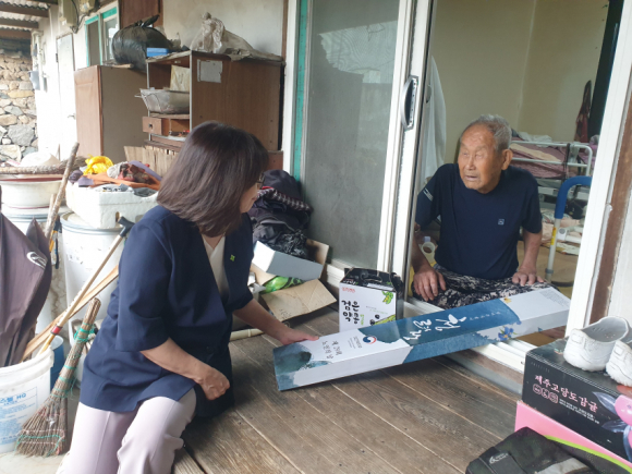 경산 남천 행정복지센터가 지난 13일 올해 100세를 맞이한 어르신 2분(대명리, 흥산리거주)에 정부에서 지원하는 장수지팡이를 전달했다.