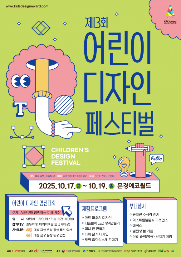 경북도와 문경시가 주최하고 (사)디자인정책연구원이 주관하는 제13회 대한민국 어린이제품 디자인 공모전 ‘어린이 디자인 페스티벌’이 오는 17일~19일까지 사흘간 문경에코월드에서 열린다.