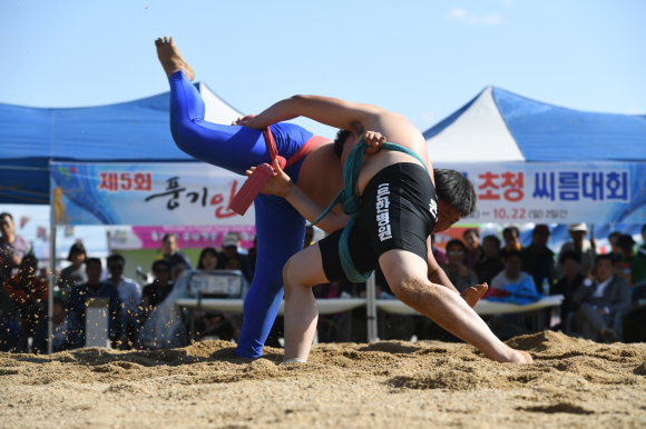 | 풍기인삼축제 개막 전국씨름대회 경기 모습.<영주시 제공> | ‘제13회 영주풍기인삼장사 씨름대회’가 오는 18일~19일까지 풍기인삼축제장 특설씨름장에서 열린다. 대회는 영주 체육회 주최, 영주 씨름협회 주관으로 열리며, 전국 각지에서 모인 씨름 동호인 120여 명이 출전해 씨름의 진수를 선보이고 축제의 흥을 더할 예정이다. 이번 대회는 ‘2025경북영주 풍기인삼축제’와 함께 진행돼 전통 스포츠와 지역 대표 축제가 어우러진 이색 행사로 기대를 모은다. 시는 행사를 통해 축제장을 찾는 관광객들에게 씨름의 매력과 풍기인삼의 명품 이미지를 동시에 홍보하는 효과를 거둘 것으로 보고 있다. 조한철 체육진흥과장은 “제13회 영주풍기인삼장사 씨름대회 개막을 진심으로 축하드리며, 선수들이 갈고닦은 기량을 마음껏 발휘하고 부상 없이 대회를 마치길 바란다”고 말했다. 이어 “18일~26일까지 열리는 ‘2025경북영주 풍기인삼축제’와 ‘2025 영주장날 농특산물대축제’에도 많은 시민과 관광객 참여를 바란다”고 덧붙였다. |