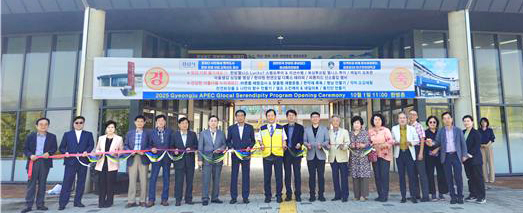 ↑↑ 박수진 대구한의대 산학부총장과 최용구 촌장, 김인수 경산시의회 의원 등이 '2025 경주 APEC 글로컬 세렌디피티 프로그램 개회식'에서 테이프 컷팅식이 열리고 있다. 대구한의대 제공