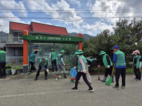 성주 수륜 새마을회가 지난 17일 메뚜기 축제장 환경정화와 버스승강장 청소를 실시 했다.