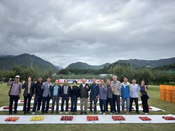 품평회 대상은 감홍 품종 기준에 맞는 완벽한 착색 관리와 높은 당도, 외관의 변형이 없는 상태(정형과), 적정한 착과관리 및 나무의 생육관리가 가장 이상적으로 이뤄진 동로면 최혁주(만성농원)농가가 선정됐다.