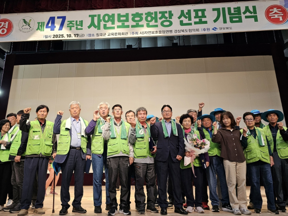 | 지난 17일 제47주년 자연보호헌장 선포 기념식장에서 상주 자연보호협의회 회원 3명이 환경보전에 기여한 공로를 인정받았다.