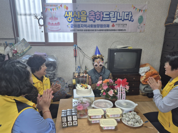 군위읍 지역사회보장협의체가 지난 20일, 저소득 홀몸어르신을 찾아 ‘생신 축하합니다’사업을 진행했다.