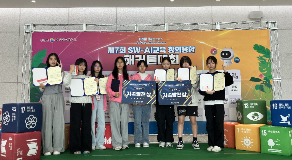 | 경북 교육청이 주최한 ‘제7회 SW‧AI교육 창의융합 해커톤 대회’에서 영천여중생으로 구성된 2개팀 모두 지속발전상(3위)을 수상했다.