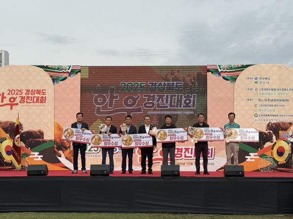 예천군이 지난 21일 영주시 문정둔치에서 열린 ‘2025년 경상북도 한우경진대회’에서 예천 풍양면 김영휘 씨가 암송아지 부문 최우수상을 수상해 예천한우의 우수성을 널리 알렸다.