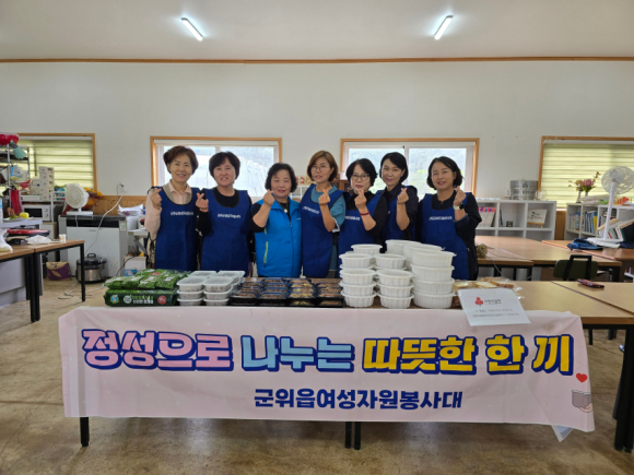 군위읍 여성자원봉사대가 지난 21일 수니딸기에서 밑반찬을 조리해 홀몸어르신과 취약계층 15가구에 전달했다.