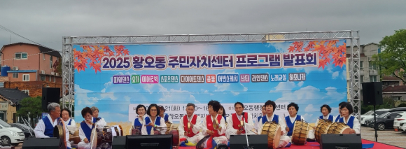 황오동 주민자치위원회가 지난 21일 동 행정복지센터 내 주차장에서 '황오동 주민자치센터 프로그램 발표회'를 개최했다.