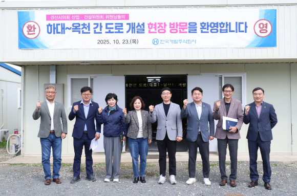 경산시의회 산업·건설위원회가 지난 23일 제265회 임시회 기간 중 남산면 하대리에서 자인면 옥천리 일원에 이르는 '하대~옥천간 도로 개설 사업' 현장을 방문해 추진 상황을 점검했다.