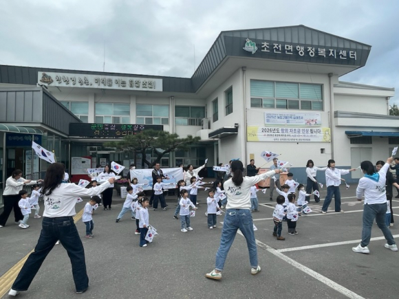 지난 24일 성주 초전 행정복지센터 전정에서 초전어린이집 원아와 교사 40여명이 참여한 ‘독도사랑 플래시몹’공연을 펼쳤다.