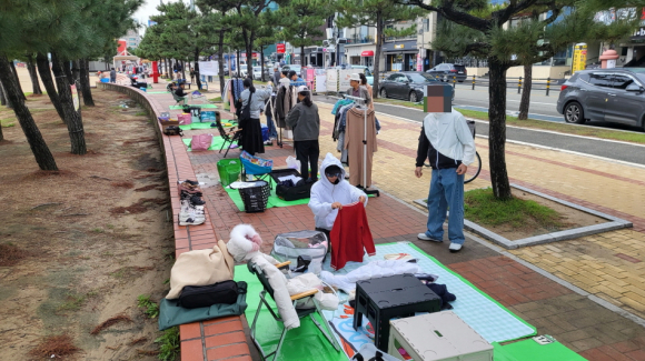 | ↑↑ 지난 25일 영일대해수욕장 바다시청 앞에서 마지막 ‘포항 벼룩시장 교환장터’를 운영했다.<포항시 제공> |