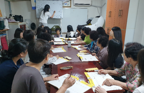 | ↑↑ 영천여고 서연 동아리 학생이 마을회관에서 어른신께 봉사하고 있는 모습<영천교육지원청 제공> |