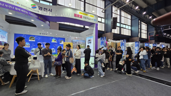 | ↑↑ 제12회 경상북도 평생학습박람회에서 영천시 부스를 방문한 관람객들 모습<영천시 제공> |