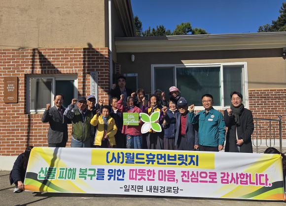 전달식은 지난 3월 산불로 화장실이 다 타버린 원리내원경로당의 복구와 어르신의 안전한 쉼터 회복을 위해 (사)월드휴먼브리지에서 2,550만 원 복구비를 지원해 마련됐다. 실내 화장실 설치 및 내부 환경 개선과 그을음 제거를 위한 외부 도색 등, 경로당 보수를 완료하고 새로운 출발을 응원하고자 지원했다고 관계자는 밝혔다.