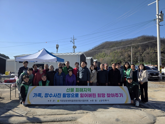 | 안동 새마을회 직·공장협의회가 지난 28일 임하면 선진이동주택을 시작으로, 산불 피해를 입은 이재민 950세대 1,500여 명을 대상으로 2개월간 ‘산불 이재민 가족사진 촬영’을 진행한다.