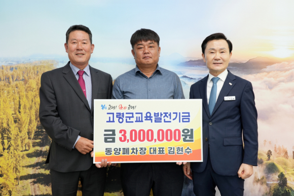 동양 폐차장에서 지난 28일, 고령군청을 방문해 교육발전기금 300만원을 기탁했다.