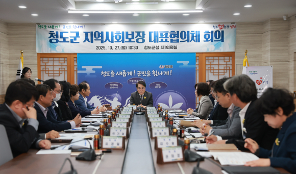 청도 지역사회보장협의체가 지난 27일 군청 제1회의실에서 지역사회보장 대표협의체 회의를 개최했다. 회의는 ▲신임 위원 위촉(임명)장 전달 ▲전임 민간위원장 감사패 수여 ▲신임 민간위원장 선출 ▲2026년 연차별 시행계획(안) 의견 수렴 등의 순으로 진행됐다.