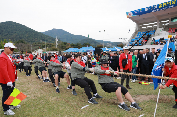 | ↑↑ 청도군이 역대 최대 규모로 열린 제74회 청도군민체육대회에서 줄다리기 경기가 진행되고 있다. 청도군 제공 |