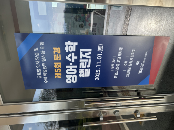 | 영어수학챌린지 포스터- | (재)문경장학회가 지역 학생에게 영어와 수학 능력을 가늠하고 학습에 대한 동기를 부여하기 위하여 지난 11월1일 제5회 문경 영어·수학 챌린지를 개최했다.