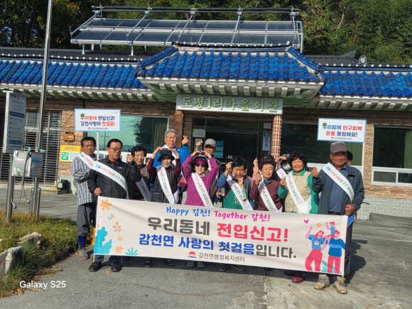 김천 감천 행정복지센터가 지난 7일 도평1리 마을에서 인구 전입 활성화 캠페인을 실시했다.