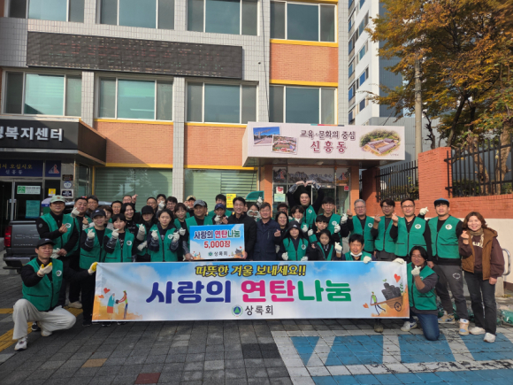 상주 상록회가 지난 9일 신흥동을 찾아 관내 취약계층 10가구에 연탄 5,000장(가구당 500장씩)을 채인기 동장에게 기탁, 이 중 2가구는 회원이 직접 배달했다.