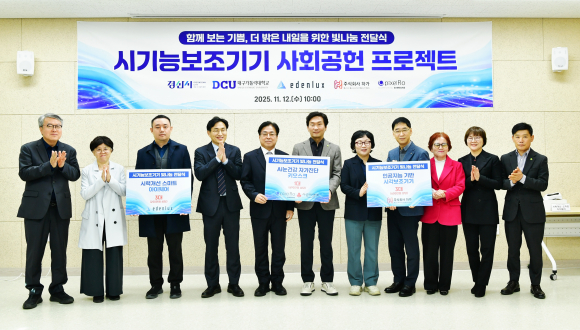 행사는 경산시가 대구가톨릭대 등과 협력해 추진 중인 시기능 보조기기 지원 사업의 성과를 시민과 공유하고 기업의 사회적 가치를 실현하기 위해 마련된 자리다. 이런 취지에 따라 수혜기업의 첨단 보조기기 기증을 통해 시민 눈 건강 증진에 기여하고 기업에는 제품 개선을 위한 현장 검증의 기회를 제공하는 상생형 사회공헌 프로젝트로 기획됐다.