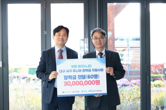 장학금은 대구 사회복지협의회가 기획한 ‘희망온(溫) 서구 주니어 장학금 지원사업’을 통해 지원되며 서구는 대상자 모집과 기탁식 진행 등을 담당했다. 기탁금은 관내 동 행정복지센터 추천을 받아 저소득 청소년 60가구에 1인당 50만원씩 전달됐다.