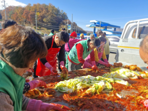 상주 화동 새마을남녀지도자회원이 이른 아침부터 모여 절임배추를 버무리며 직접 김치를 담아 관내 독거노인, 저소득 가구 등 소외계층에게 라면과 함께 지난 12일 전달했다.