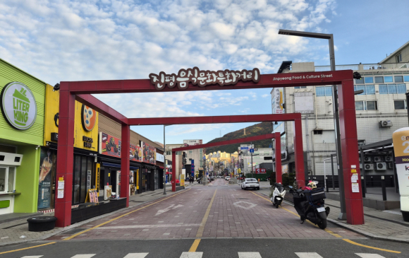 ↑↑ 진평 음식문화 특화거리 모습.<구미시 제공>