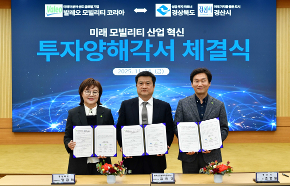 경산시와 경북도가 지난 14일 경산시청 대회의실에서 글로벌 자동차 부품 기업인 발레오모빌리티코리아㈜(이하 '발레오모빌리티')와 첨단 자율주행 기술 고도화를 위한 투자양해각서(MOU)를 체결했다.