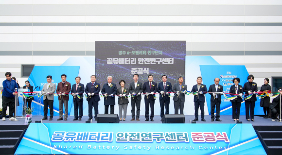 경북테크노파크(원장 하인성·경북TP)가 지난 13일 경주시 'e-모빌리티 연구단지(외동읍 구어2산업단지 소재)' 내에서 '공유배터리 안전연구센터' 준공식을 개최하고, 국내 전기이륜차 산업의 안전성 검증과 표준화 연구를 주도할 핵심 인프라의 운영에 들어갔다.