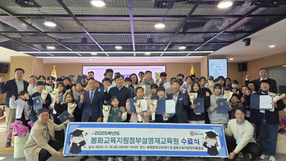 봉화교육지원청이 지난 15일(토), 봉화과학발명교육센터 및 어울림실에서 ‘2025학년도 봉화교육지원청부설영재교육원 수료식’을 개최했다. 행사에는 영재교육대상 학생, 학부모, 지도강사 등 70여 명이 참석해 올 한 해 학생들이 이룬 성장의 성과를 함께 나눴다.