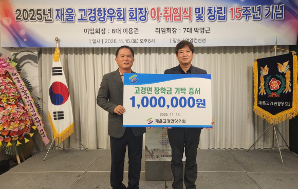 이임 제6대 이용관 회장은 “고향 후배들의 꿈을 응원한다”며, 영천장학회에 장학금 100만 원을 기탁했다.