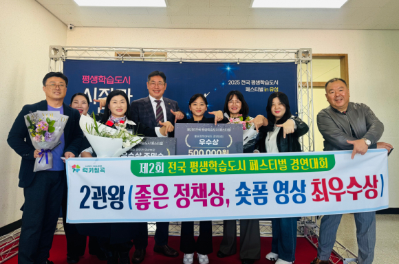 칠곡군은 지난 15일 대전에서 열린 ‘2025년 제2회 전국 평생학습도시 페스티벌’에서 ‘평생학습도시 좋은 정책상 우수상’과 ‘영상 공모전 최우수상’을 동시에 수상하며 2관왕에 올랐다.