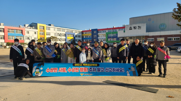 | 어린이 약취·유인 예방 등굣길 캠페인 모습.<영주서 제공> | 영주경찰서가 지난 18일 영주남부초 정문에서 교육지원청 및 교직원 등 30여 명과 함께 어린이 약취·유인 예방을 위한 등굣길 캠페인을 실시했다. 캠페인은 최근 사회적 문제로 대두되고 있는 어린이 대상 약취·유인 범죄 예방의 필요성이 커짐에 따라 해당 범죄의 심각성을 알려 지역사회에 어린이 보호 문화를 확산에 기여함과 동시에 안전한 등굣길 환경을 조성하기 위해 마련됐다. 캠페인에는 등굣길 학생들에게 홍보물과 함께 ▲부모님에게 행선지 알리기 ▲낯선 사람 조심하기 ▲사람이 많은 큰길로 다니기 등 유괴 예방 안전수칙 안내를 통해 자발적 안전 의식을 강화하고 실생활에서 예방 행동을 실천할 수 있도록 홍보하였다. 또한 학부모와 주민에게도 약취·유인 범죄의 심각성과 신고의 중요성을 강조했다. 윤태영 경찰서장은 “최근 어린이 대상 범죄가 사회적 문제로 떠오르고 있고 곳곳에서 나타나고 있다”며 “아동 안전은 지역사회가 함께 지켜나가야 하는 만큼, 관계 기관과 지속적인 협력을 통한 예방 활동을 진행하여 안전한 지역 환경을 만들어 나가겠다”고 말했다. |