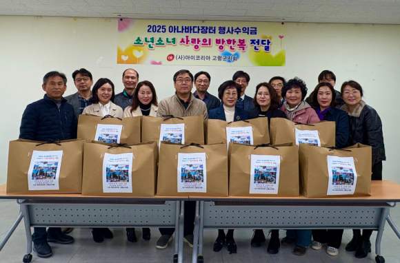 아이코리아 고령지회가 초등학생 9명에게 사랑의 방한복(200만 원 상당)을 전달 행사를 진행했다.