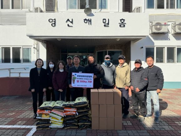 울진 후포대게자망협회가 지난 18일 영신해밀홈(원장 정은경)에 쌀 300kg를 기부했다.