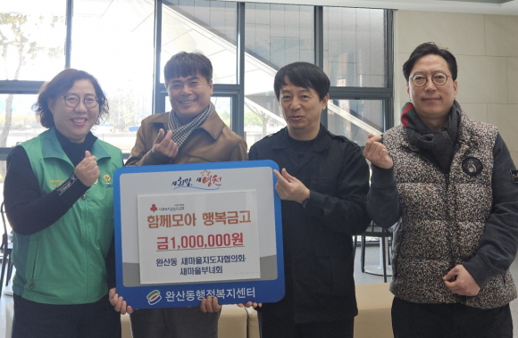 완산동 새마을지도자협의회와 새마을부녀회가 19일 지역 내 어려운 이웃을 위한 성금 100만 원을 ‘함께모아 행복금고’에 기탁했다.