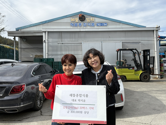 안강읍 소재 해뜰종합식품이 지난 12일 지역 저소득층 및 복지사각지대 주민 지원을 위해 김장김치 20박스를 성건동 행정복지센터에 기탁했다.
