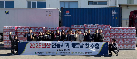 안동시가 지난 21일 대경사과원예농협 안동유통센터(풍산읍 유통단지길 99)에서 안동사과의 베트남 수출을 위한 상차를 시작으로 본격적인 사과 수출에 나섰다.