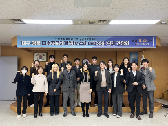 대구지방조달청이 25일 관내 조명기구 다수공급자계약(MAS) 등록 기업을 초청해 현장에서 겪는 애로사항을 직접 청취하고 개선 방향을 논의하는 간담회를 가졌다.