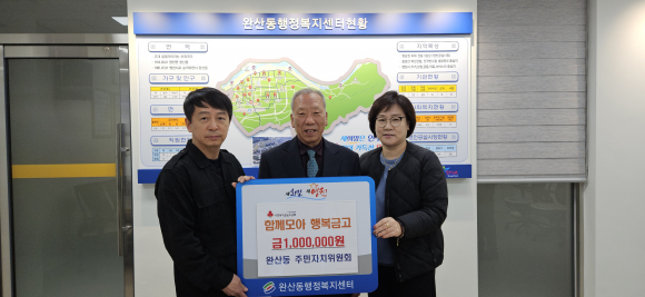 완산동 주민자치위원회가 지난 25일 성금 100만 원을 ‘함께모아 행복금고’에 기탁했다.