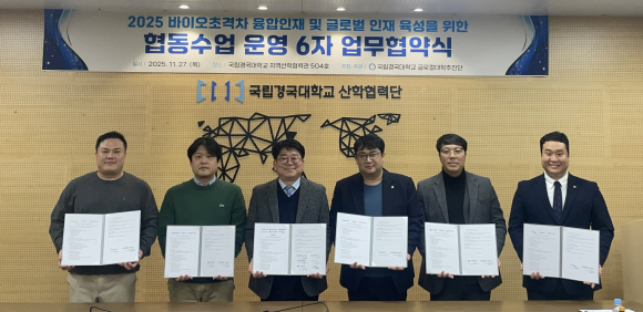 국립경국대(총장 정태주) 글로컬대학추진단이 지난 27일 오후 지역산학협력관에서 지역 농식품·전통문화·로컬브랜드 산업체 5곳과 '협동수업 운영 및 지역기반 교육협력 업무협약(MOU)'을 체결했다.