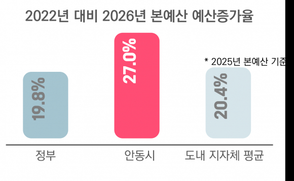 | ↑↑ 2022년비 2026년 본예산 기준 예산 증가율표.<안동시 제공> |