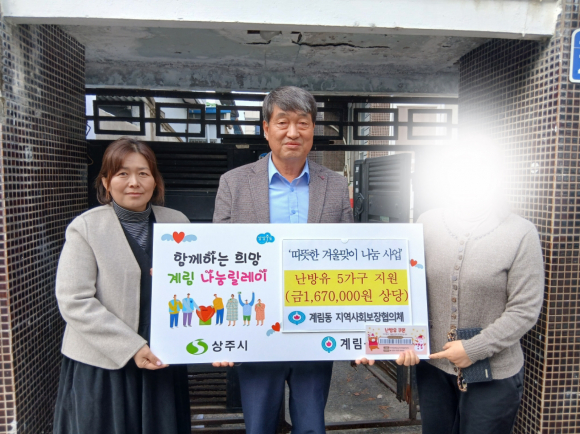 상주 계림동과 지역사회보장협의체가 지난 달 27일 저소득층 5가구를 선정, 난방유 쿠폰 167여만 원을 전달했다.