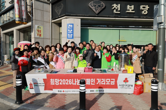 예천군이 지난 2일 예천읍 천보당 사거리에서 예천 사랑의열매 나눔봉사단, 여성단체회원, 봉사단체, 공무원 등 50여 명이 참여한 가운데 '희망2026 나눔캠페인' 거리모금을 실시했다.