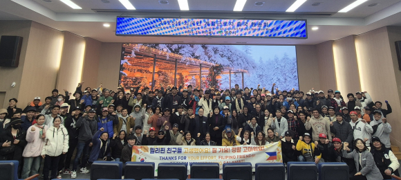 | 외국인 계절근로자 귀국 환송 단체 기념사진.<영주시 제공> | 영주시가 지난 5일 외국인 계절근로자 132명이 마지막 귀국길에 오르며 금년 계절근로자 사업을 마무리했다. 출국 환송회에는 필리핀 로살레스시 계절근로자 113명, 가족초청 계절근로자 19명과 농가주 등이 참석해, 한 해 동안 영주 농촌 현장에서 큰 역할을 해준 근로자 노고를 격려하고 환송하는 시간을 가졌다. 이번에 출국한 근로자들은 필리핀 로살레스시 파견 계절근로자와 베트남에서 초청된 가족초청 근로자로, 관내 농가에서 인삼·사과·생강 등 주요 농작물 수확 및 정리작업을 맡으며 든든한 노동력을 제공해왔다. 시는 올해 528명(연인원) 외국인 계절근로자를 유치했으며, 국가별 구성은 필리핀 로살레스시 323명, 라오스 51명, 결혼이민자 본국 가족근로자 104명, 베트남 타이빈성 공공형 계절근로자 50명이다. 올해 본격 운영에 들어간 공공형 계절근로중개센터는 4월 개소 이후 11월까지 약 8개월간 운영되며 2,231농가에 8,387명(연인원)의 인력을 중개하는 성과를 거뒀다.