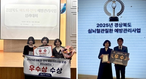 | 경산시(시장 조현일)가 지난 1일 '2025년 경북도 아토피·천식 예방 관리 사업 성과대회'에서 우수상을 수상한 데 이어, 5일 '2025년 경북도 심뇌혈관질환 예방 관리 성과대회'에서도 우수 기관상을 수상했다.