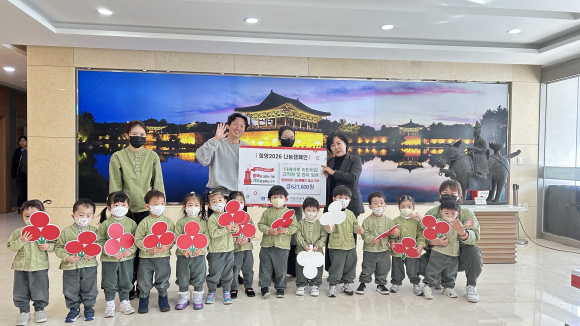 경주 동천동 우방아파트 단지내 위치한 아해마루 어린이집에서 지난 3일, 교직원 및 원아 13명과 함께 경주시청을 방문하여 이웃돕기 성금 62만1,600원을 기탁했다.