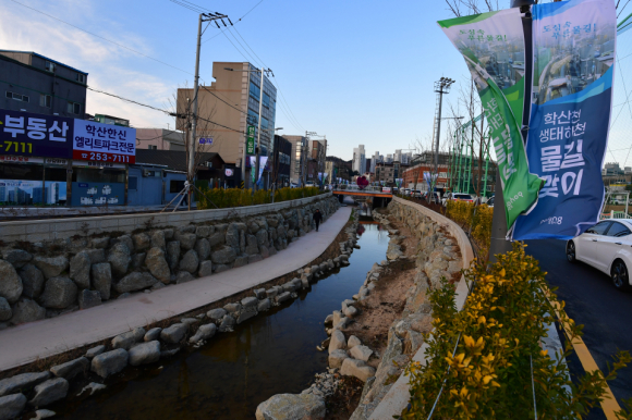 | ↑↑ 물길 연결된 학산천 생태공원 모습.<뉴스1> |